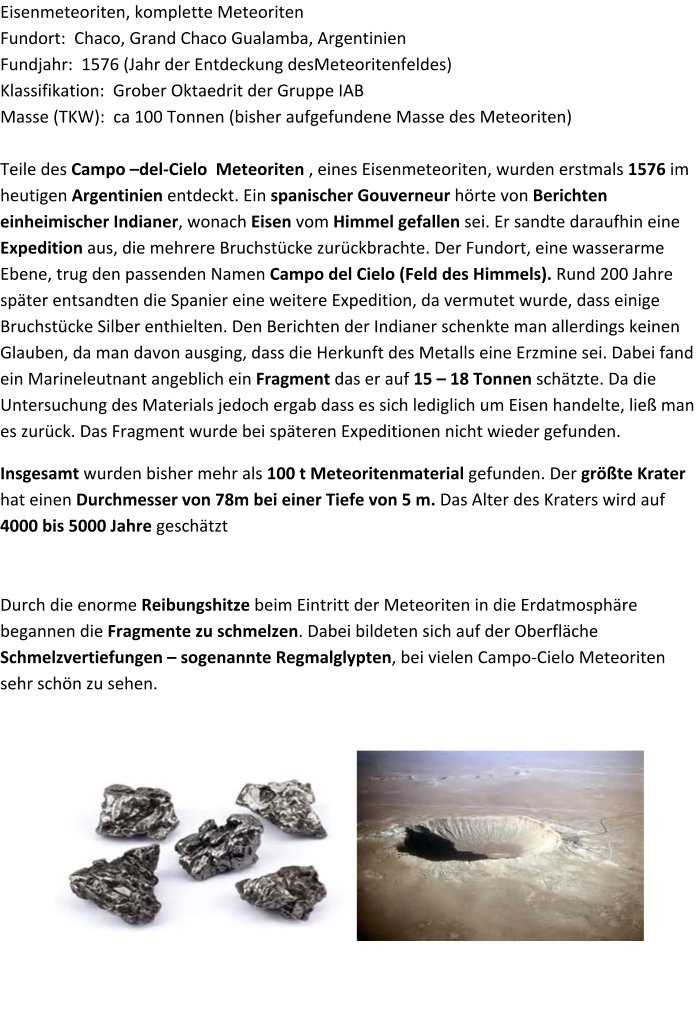 Eisenmeteorit vom Campo del Cielo, Argentinien